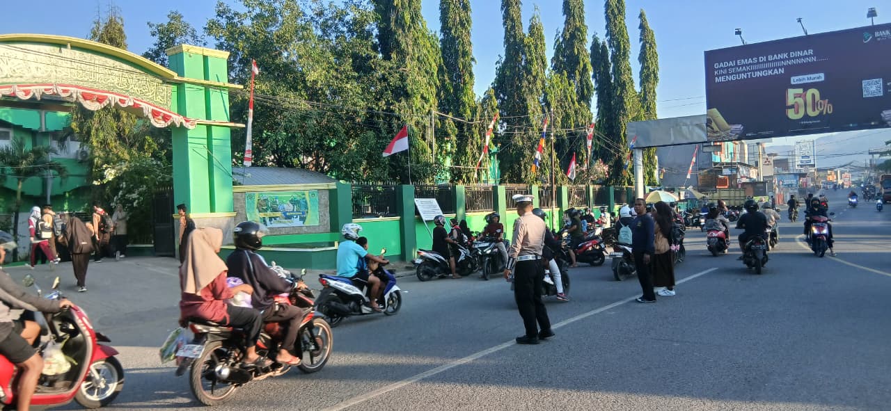 Kota Bima, NTB (10 September 2025) – Untuk menciptakan keamanan, keselamatan, ketertiban, dan kelancaran lalu lintas (Kamseltibcarlantas), anggota Lantas Polsek Rasanae Barat Polres Bima Kota melaksanakan kegiatan Rawan Pagi di depan MTsN 1 Kota Bima, Sabtu (06/09/2025) pukul 06.30 WITA.