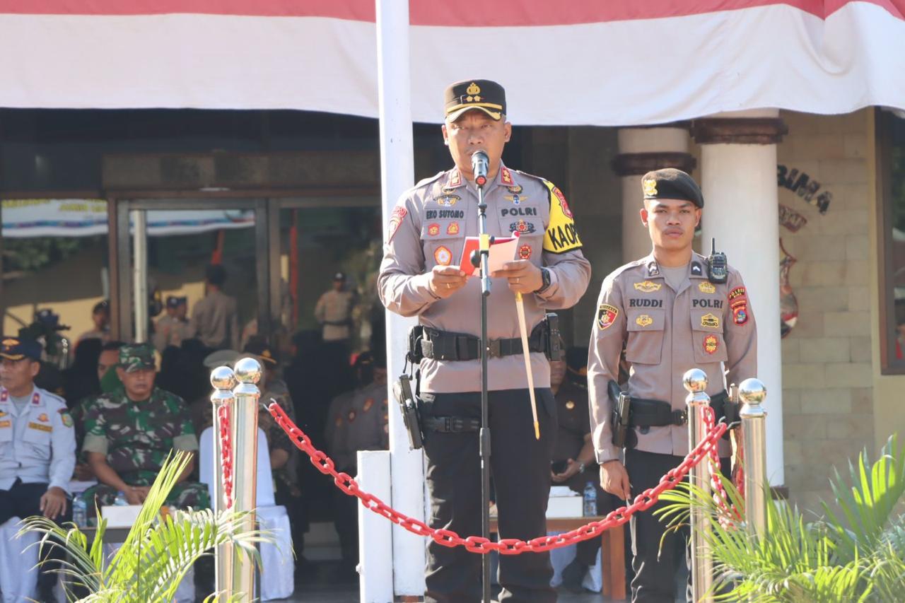 Kapolres Bima AKBP Eko Sutomo S.I.K., M.I.K., menyampaikan amanat Kapolda NTB Irjen Pol Drs. R. Umar Faroq SH., M.Hum., Apel gelar pasukan operasi mantap praja 2024 ini dilaksanakan secara serentak di seluruh Indonesia