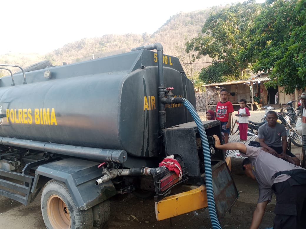 Kapolres Bima AKBP Eko Sutomo S.I.K.,M.I.K., melalui Kasi Humas Iptu Adib Widayaka mengatakan pendistribusian air bersih kepada masyarakat yang terdampak kekeringan ini dilakukan sebagai bentuk kepedulian Polri kepada masyarakat.