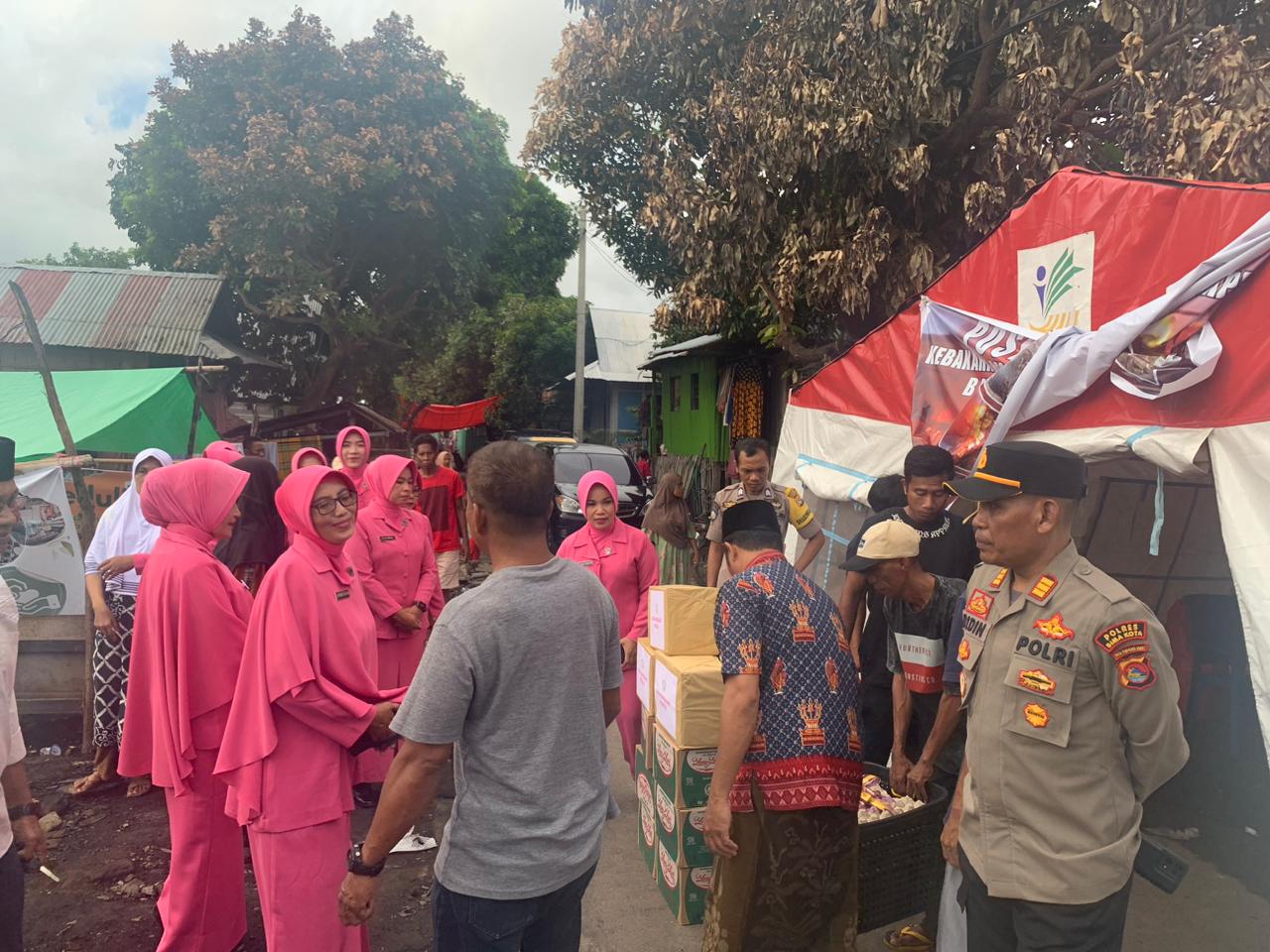 Kapolsek Sape dan Ibu Ketua Bhayangkari ranting Polsek Sape memberikan bantuan dengan harapan dapat meringankan beban korban kebakaran dan memberikan semangat kepada personel Pos Pam yang menjaga keamanan di Pelabuhan Sape selama Ops Ketupat Rinjani 2024.