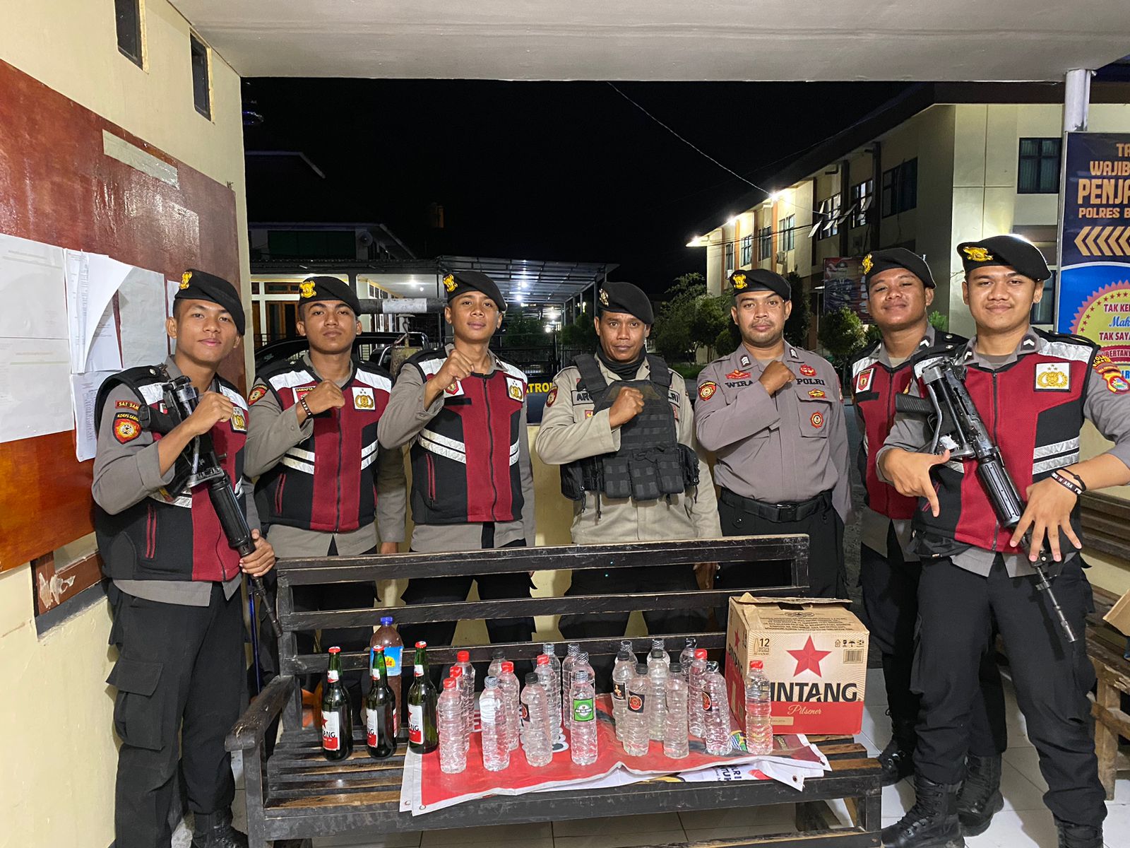 Adapun puluhan botol miras yang disita dari para pedagang barang haram, urai AKP Jufrin, 3 botol Bir Bintang, 22 botol Arak Bali dan sebotol Brem.