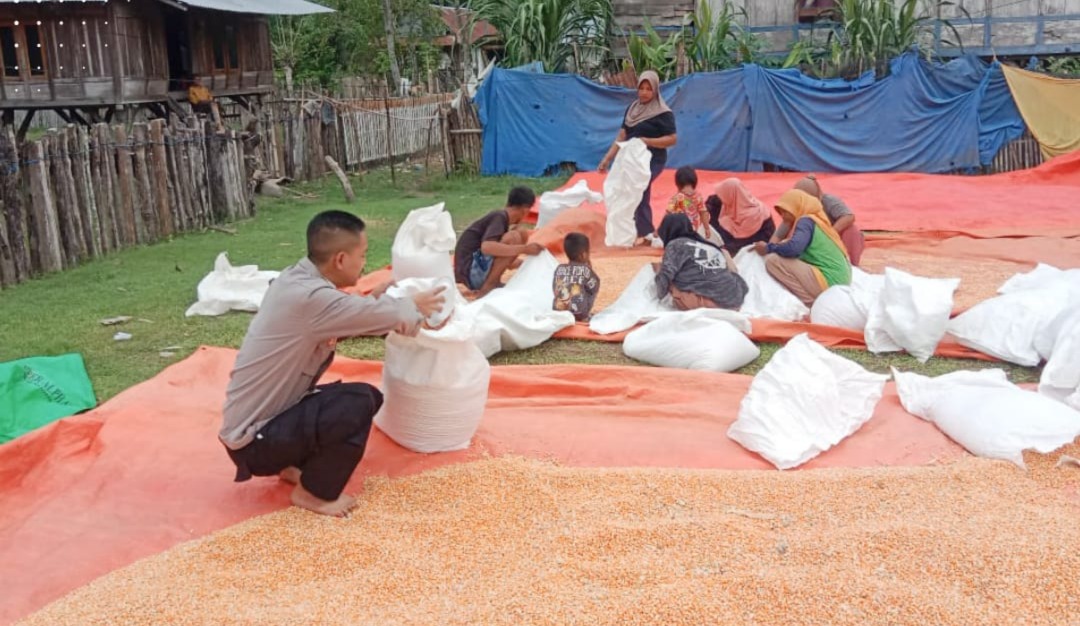 Kapolres Bima Kota AKBP Didik Putra Kuncoro, S.I.K., M.Si., melalui Kasi Humas Ipda Baiq Fitria Ningsih menyampaikan bahwa salah satu Bhabinkamtibmas Polres Bima Kota turut membantu proses pengeringan jagung milik warga binaannya yang tengah memasuki masa pascapanen.