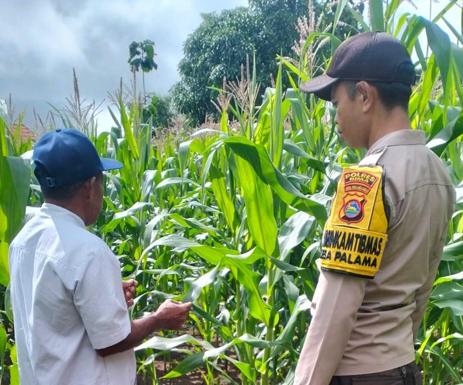 Bima, NTB (01 Maret 2025) – Bhabinkamtibmas Polsek Donggo Polres Bima Polda NTB Bripka Mardana melaksanakan pengecekan lahan jagung milik warga Desa Palama Kecamatan Donggo Kabupaten Bima Kamis (27/2/25)