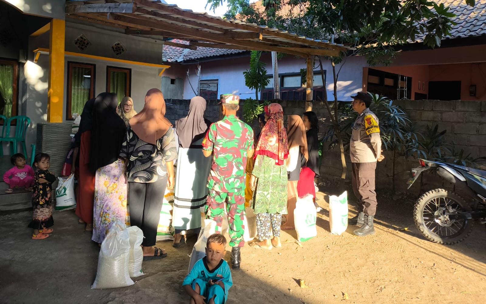 Bhabinkamtibmas juga memberikan himbauan kepada masyarakat agar tetap menjaga ketertiban saat pembagian beras.