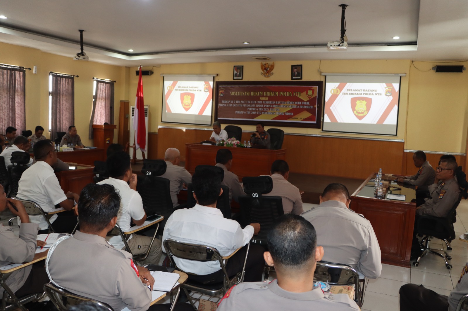 Acara penyuluhan hukum ini berlangsung di Ruang Rapat Utama (Rupatama) Mako Polres Bima Kota. Materi yang disampaikan mencakup Perkap 2 Tahun 2017 tentang Tata Cara Pemberian Bantuan Hukum, Perpol 8 Tahun 2021 tentang Penanganan Tindak Pidana Berdasarkan Keadilan Restoratif, Perpol 6 Tahun 2024 tentang PSH, dan Perkap 6 Tahun 2019 tentang Penyidikan Tindak Pidana.