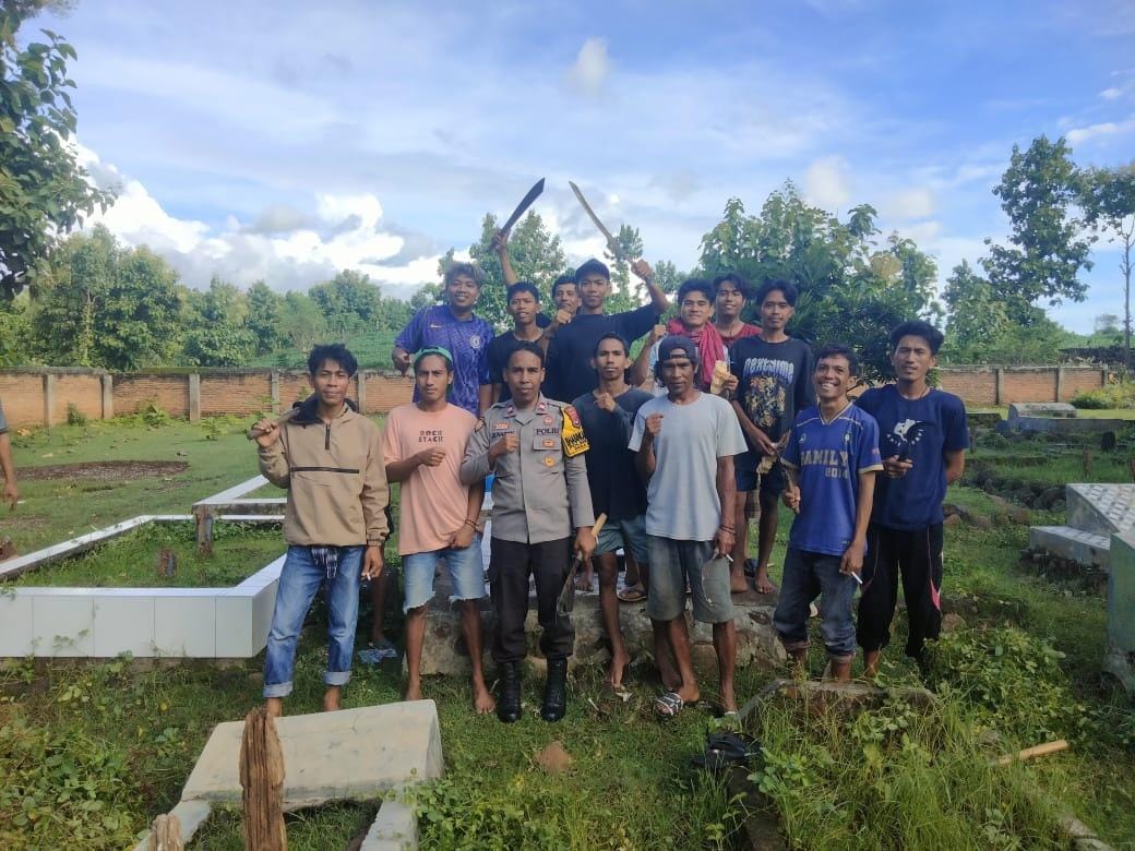 Seperti yang dilakukan oleh bhabinkamtibmas Polsek Bolo Polres Bima Polda NTB Aiptu Junaidin bersama, Toga, Ketua RW ketua RT dan warga masyarakat di desa binaannya melaksanakan gotong royong membersihkan tempat pemakaman umum (TPU).