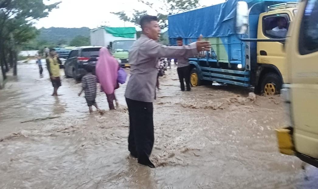 Bima, NTB (21/1) – Kapolres Bima AKBP Eko Sutomo S.I.K.,M.I.K., langsung terjun di tengah derasnya banjir di jalan lintas Bima-Sumbawa tepatnya di desa Pandai Kacamatan Woha Kabupaten.