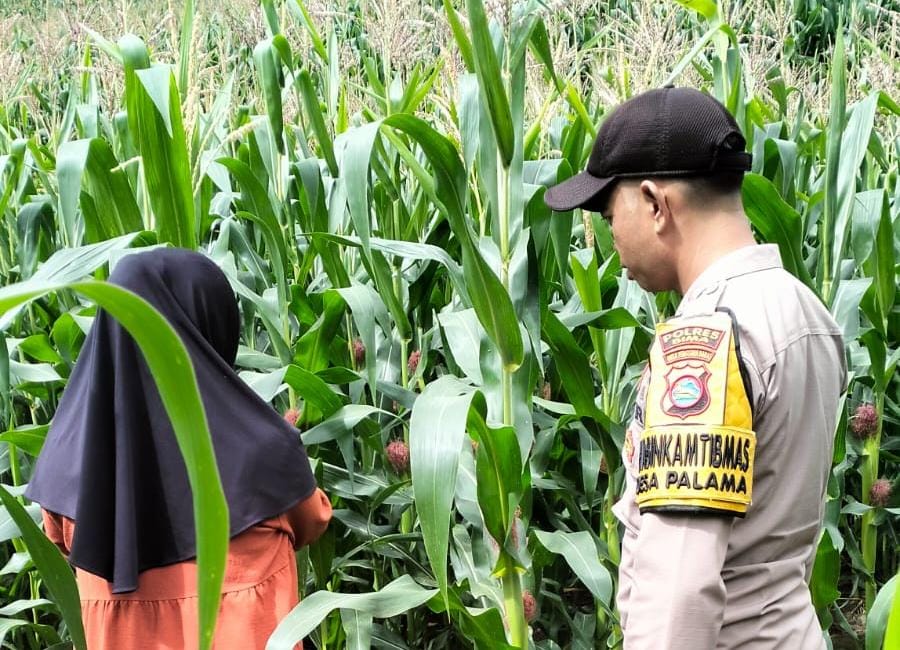 Pengecekan tanaman jagung di lahan produktif milik warga binaan di Desa Palama Kecamatan Donggo Kabupaten Bima aktif dilaksanakan oleh Bripka Mardana.