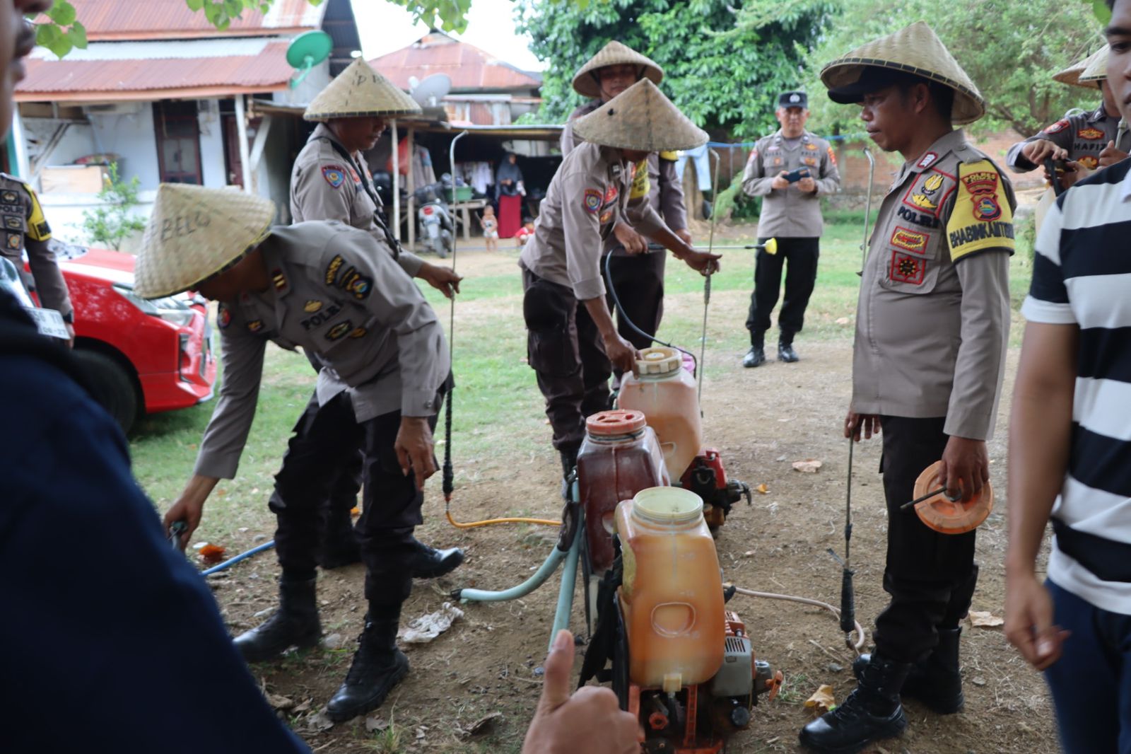 Pembajakan dan penyemprotan lahan di pekarangan Polsek Belo yang dipimpin oleh Kasat Binmas Iptu Sumardin itu berlangsung pada Kamis (07/11/24)