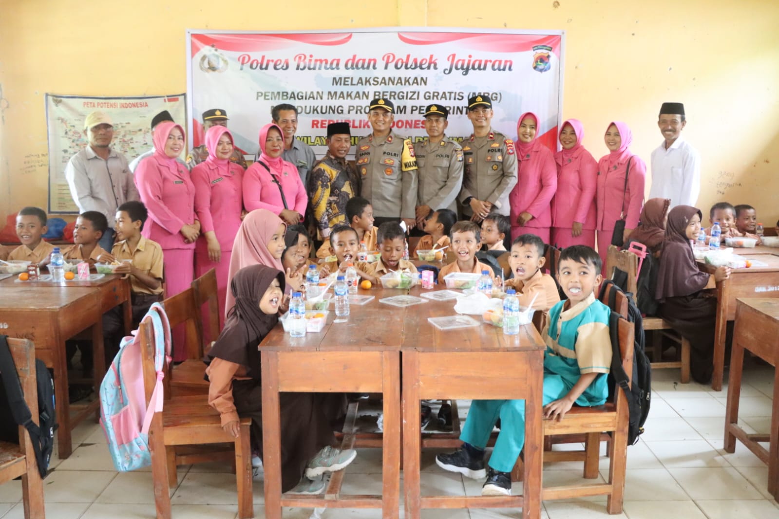 “Hari ini kami dari Polres Bima dan Polsek Madapangga hadir untuk memberikan makan siang bagi siswa-siswi SDN Inpres Mpuri dan SDN Inpres Tonda Ini dalam rangka mendukung program Presiden RI Prabowo Subianto,” kata Wakapolres Bima Kompol Saogi Sujana Angsar melalui Kasi Humas AKP Adib Widayaka.