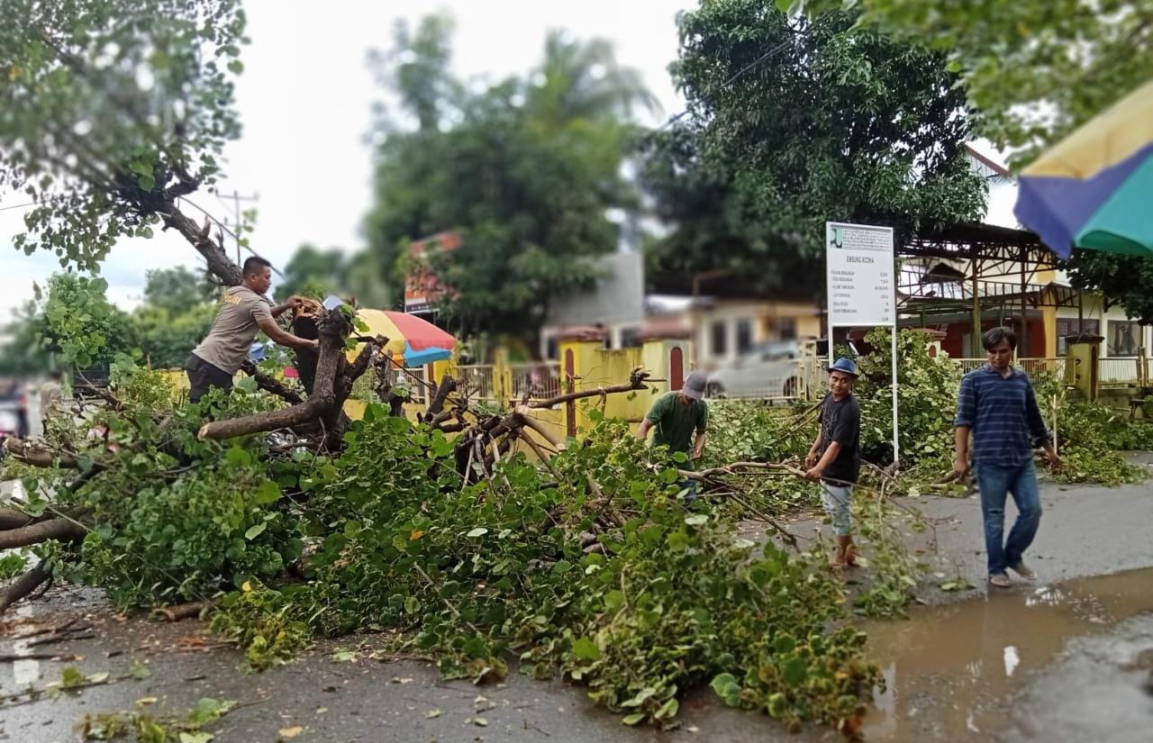 “Kami mendapatkan informasi pohon tumbang dari warga dan kami bersama anggota gerak cepat langsung mendatangi lokasi kejadian, ” kata Kapolsek.