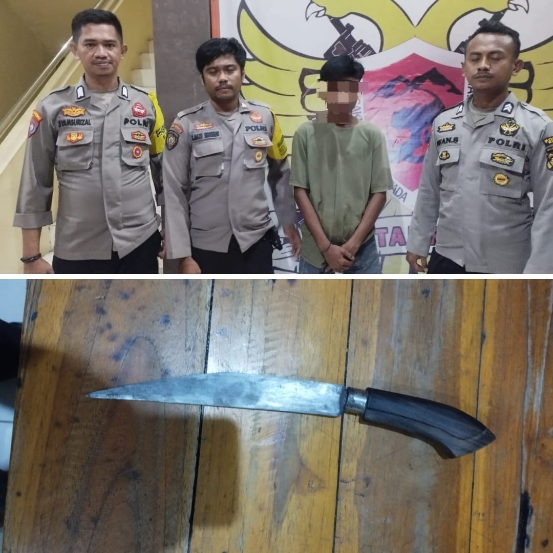 “Benar kami telah mengamankan terduga pelaku dan barang bukti sebilah pisau yang di duga kuat untuk melakukan penganiayaan”. Ujarnya.