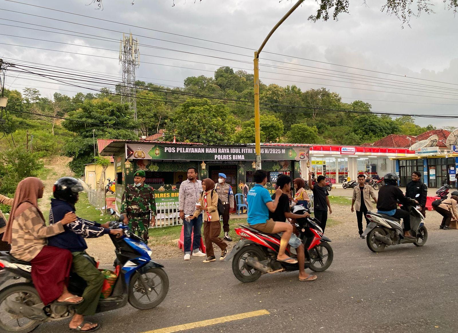 Guna mencegah terjadinya kemacetan pada saat kegiatan berlangsung, personel Pos Pelayanan Operasi Ketupat Rinjani tingkat Polres Bima Polda NTB melakukan pengamanan dan pengaturan Arus Lalulintas.