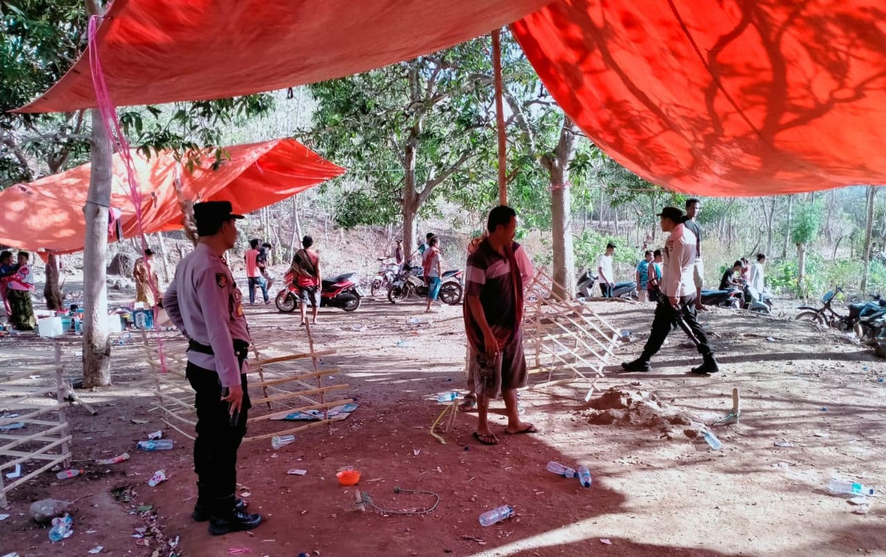 Setelah dilakukan kegiatan tersebut jalan keluar dari TKP sabung ayam sempat diblokir oleh oknum warga dengan menggunakan, baru, kayu dan wadah tempat duduk terbuat dari bambu, namun dapat dibuka kembali oleh Kapolsek serta Anggota Polsek Belo