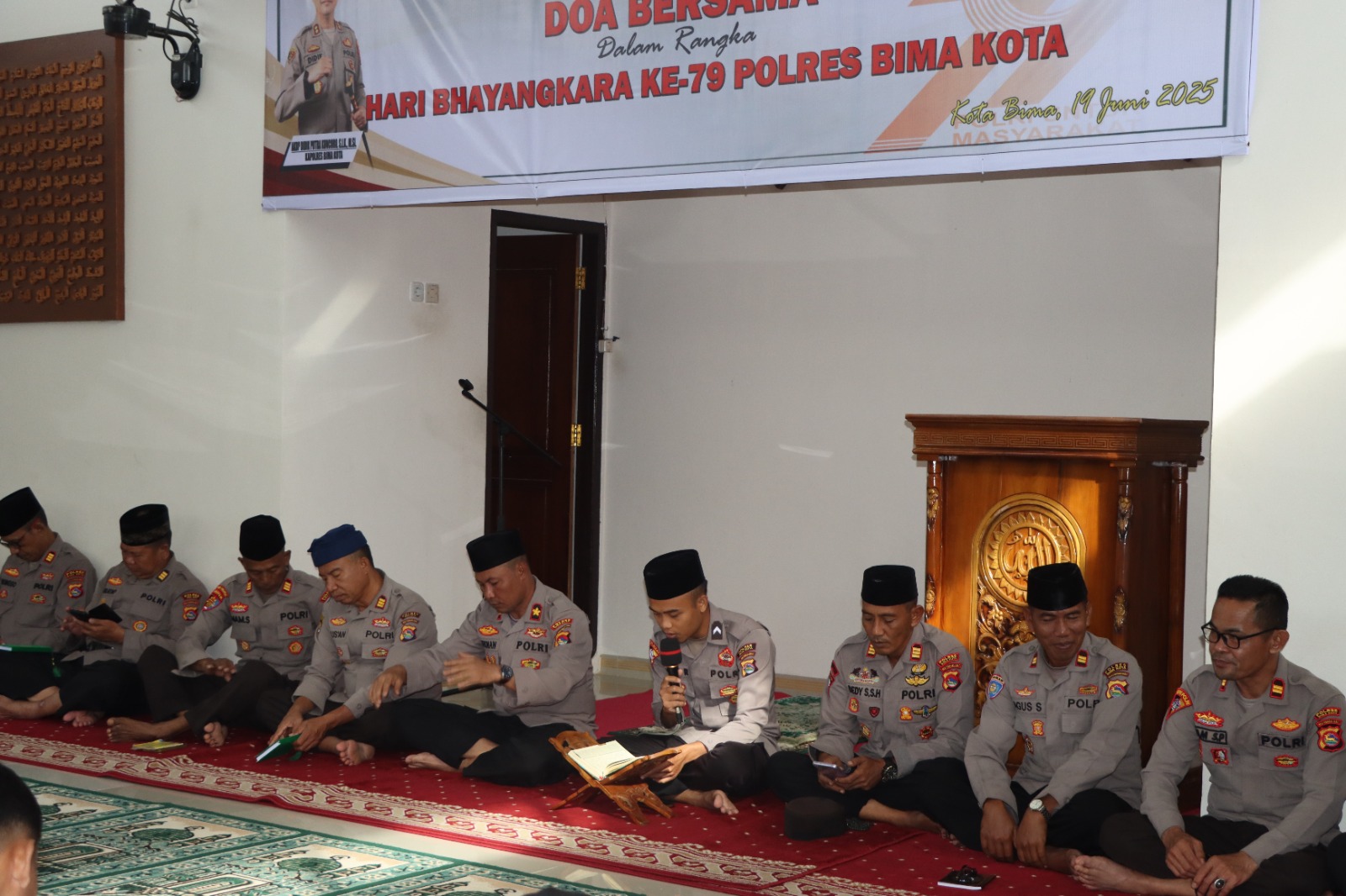 Kota Bima, NTB (19 Juni 2025) – Dalam rangka memperingati Hari Bhayangkara ke-79 tahun 2025, Polres Bima Kota menggelar kegiatan doa dan dzikir bersama yang dilaksanakan secara khidmat di Masjid Al-Jabal Qubis Mapolres Bima Kota, Kamis (19/6/2025).