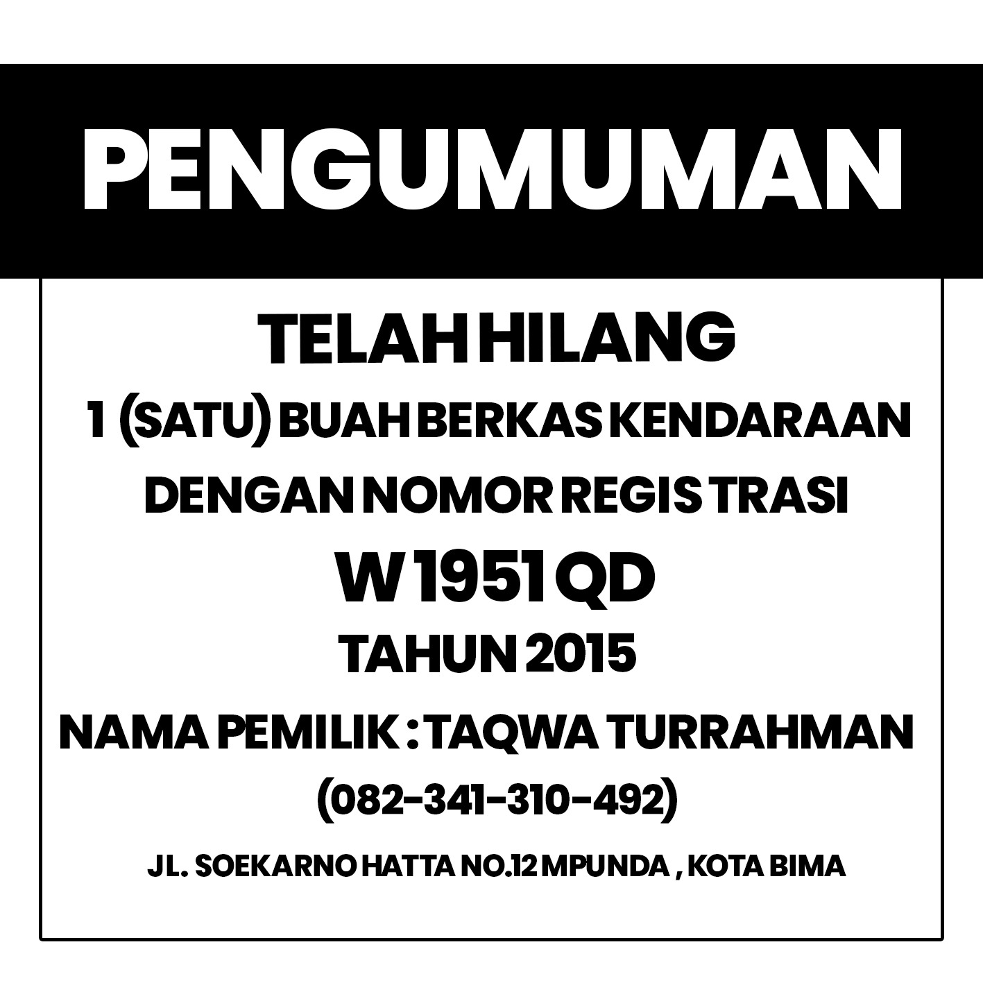 Informasi Kehilangan Berkas Kendaraan AdminFebruari 24, 2024Februari 24, 2024 Pos terkaitBhabinkamtibmas Jatibaru Timur Sosialisasi Layanan 110 dan Imbau Warga Tidak Gunakan Knalpot BrongBhabinkamtibmas Nungga Pantau Pendistribusian Makan Bergizi Gratis di Rasanae TimurBantu Anak Sekolah Menyebrang Jalan, Polsek Lambu Laksanakan Kegiatan Rawan PagiPolsek Rasanae Barat Gelar Patroli Blue Light untuk Jaga Kamtibmas di Wilayah Kota BimaJelang Pergantian Tahun, Polsek Sape Sita Ratusan Botol Minuman BeralkoholSat Samapta Polres Bima Kota Gelar Latihan Menembak Gas Air Mata (Flashball) Bersama Sat Brimob Kompi C Polda NTB
