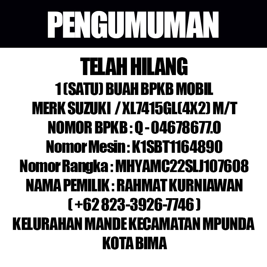 Beranda Terkini Informasi Kehilangan BPKB Mobil