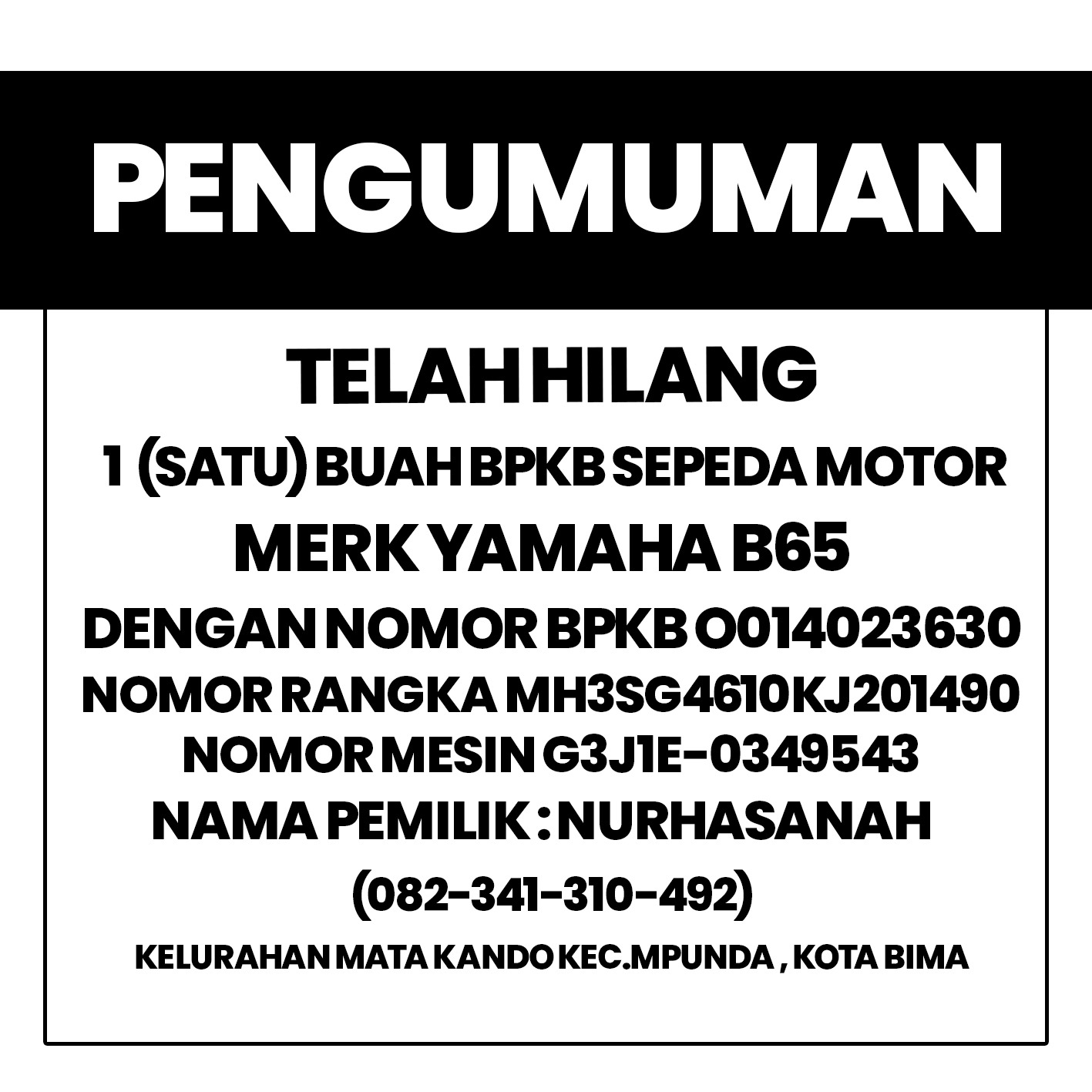 Informasi Kehilangan BPKB Sepeda Motor AdminJuli 19, 2024Juli 19, 2024 Pos terkaitBhabinkamtibmas Jatibaru Timur Sosialisasi Layanan 110 dan Imbau Warga Tidak Gunakan Knalpot BrongBhabinkamtibmas Nungga Pantau Pendistribusian Makan Bergizi Gratis di Rasanae TimurBantu Anak Sekolah Menyebrang Jalan, Polsek Lambu Laksanakan Kegiatan Rawan PagiPolsek Rasanae Barat Gelar Patroli Blue Light untuk Jaga Kamtibmas di Wilayah Kota BimaJelang Pergantian Tahun, Polsek Sape Sita Ratusan Botol Minuman BeralkoholSat Samapta Polres Bima Kota Gelar Latihan Menembak Gas Air Mata (Flashball) Bersama Sat Brimob Kompi C Polda NTB