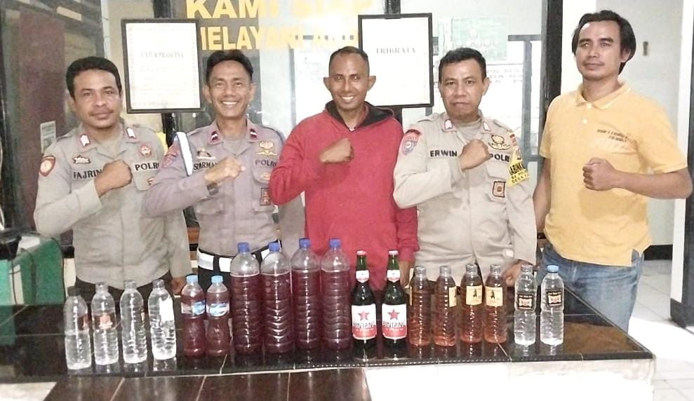 Hasil dari patroli dan operasi itu Polsek Bolo berhasil menyita puluy botol minum keras berbagai Jenis.