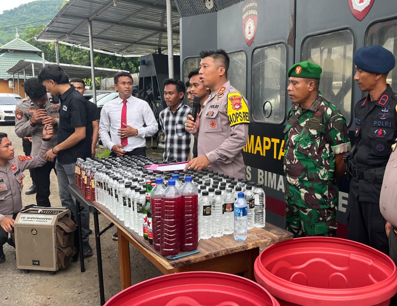 Bima, NTB (02/1/25) – “Pemusnahan miras ini dilakukan dalam rangka cipta kondisi untuk mewujudkan sitkamtibmas yang kondusif serta memberikan rasa aman dan nyaman kepada masyarakat menjelang malam pergantian tahun 2025 dan selama liburan Nataru”.