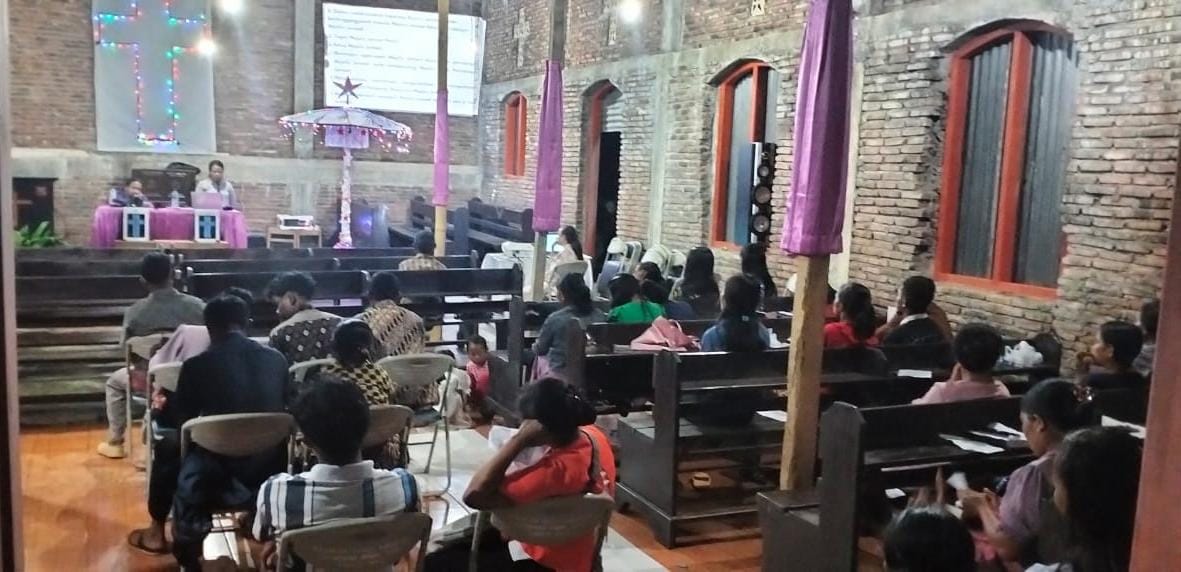 Dikendalikan oleh Ipda kader Personel pos pengamanan Nataru 2024 melaksanakan pengamanan bagi para jemaat gereja Protestan Gmit Imanuel yang melaksanakan ibadah pertama Minggu Adven Ke- 4 untuk menyambut hari Natal Sabtu (23/12/23) sekira pukul 18.00. WITA.