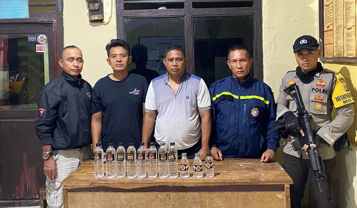 Dalam pelaksanaannya tim berhasil mengamankan puluhan botol miras jenis arak Bali.
