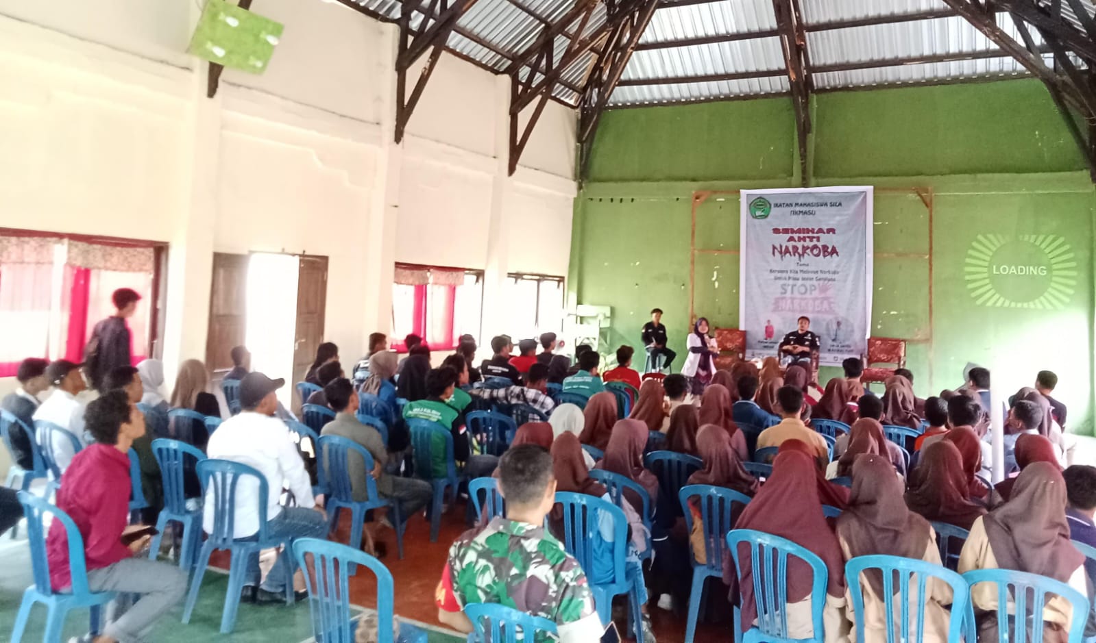 Seminar yang bertemakan “Bersama kita melawan untuk generasi gemilang”itu diadakan oleh Mahasiswa Ikmasi dengan menggandeng Polri, BNN dan Nakes sebagai pemateri.