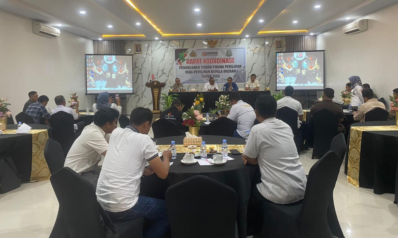 Bima, NTB (24/8) – Personel Satreskrim Polres Bima yang tergabung dalam sentra penegakan hukum terpadu/ Gakkumdu mengikuti Rakor penanganan pemilihan pada pemilihan kepala daerah tahun 2024.