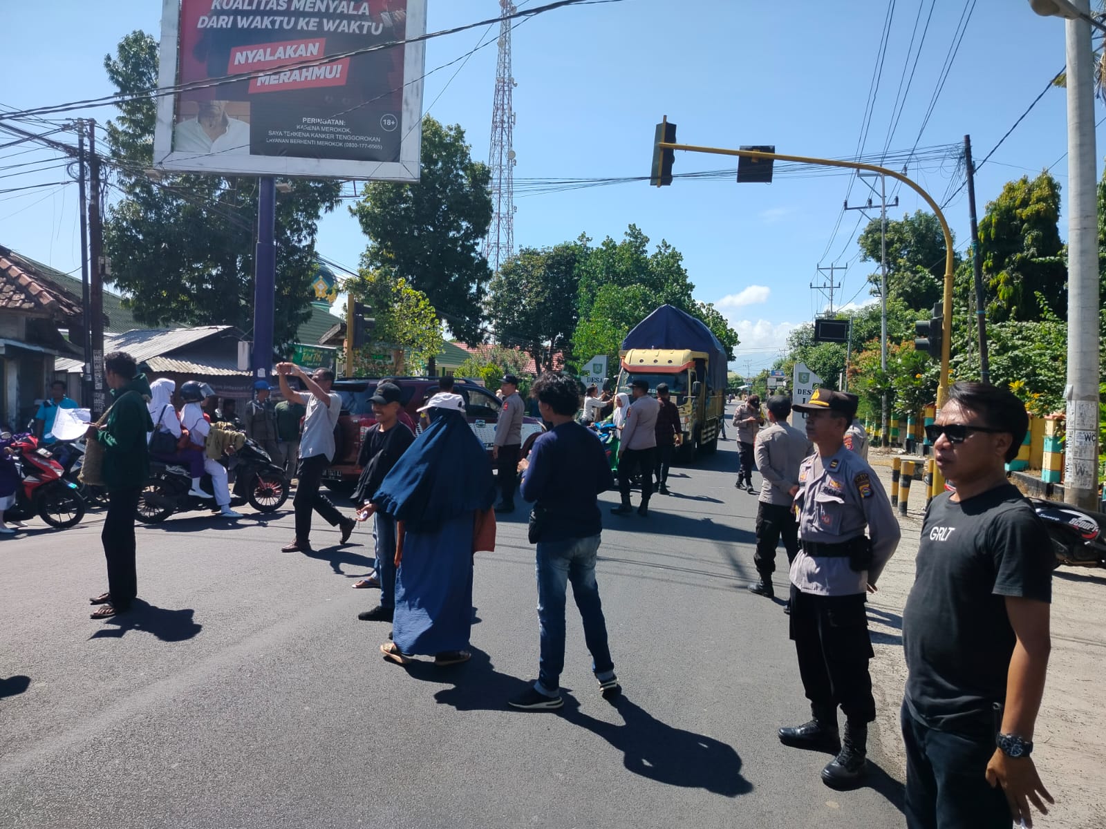 Himbauan itu tidak serta merta diindahkan oleh para pendemo atas dasar keresahan masyarakat Kapolres AKBP Eko Sutomo S.I.K. M.I.K., mengambil langkah tegas dengan mengamankan para demonstran yang melakukan aksi Blokir jalan tersebut.