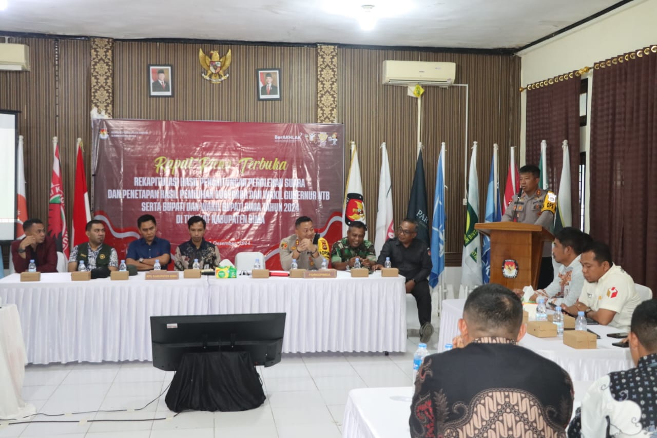 Bima, NTB (03/12) – Kapolres Bima AKBP Eko Sutomo S.I.K.,M.I.K., hadiri pembukaan Rapat Pleno Rekapitulasi hasil penghitungan perolehan suara Gubernur dan Wakil Gubernur serta Bupati dan Wakil Bupati yang digelar KPU.