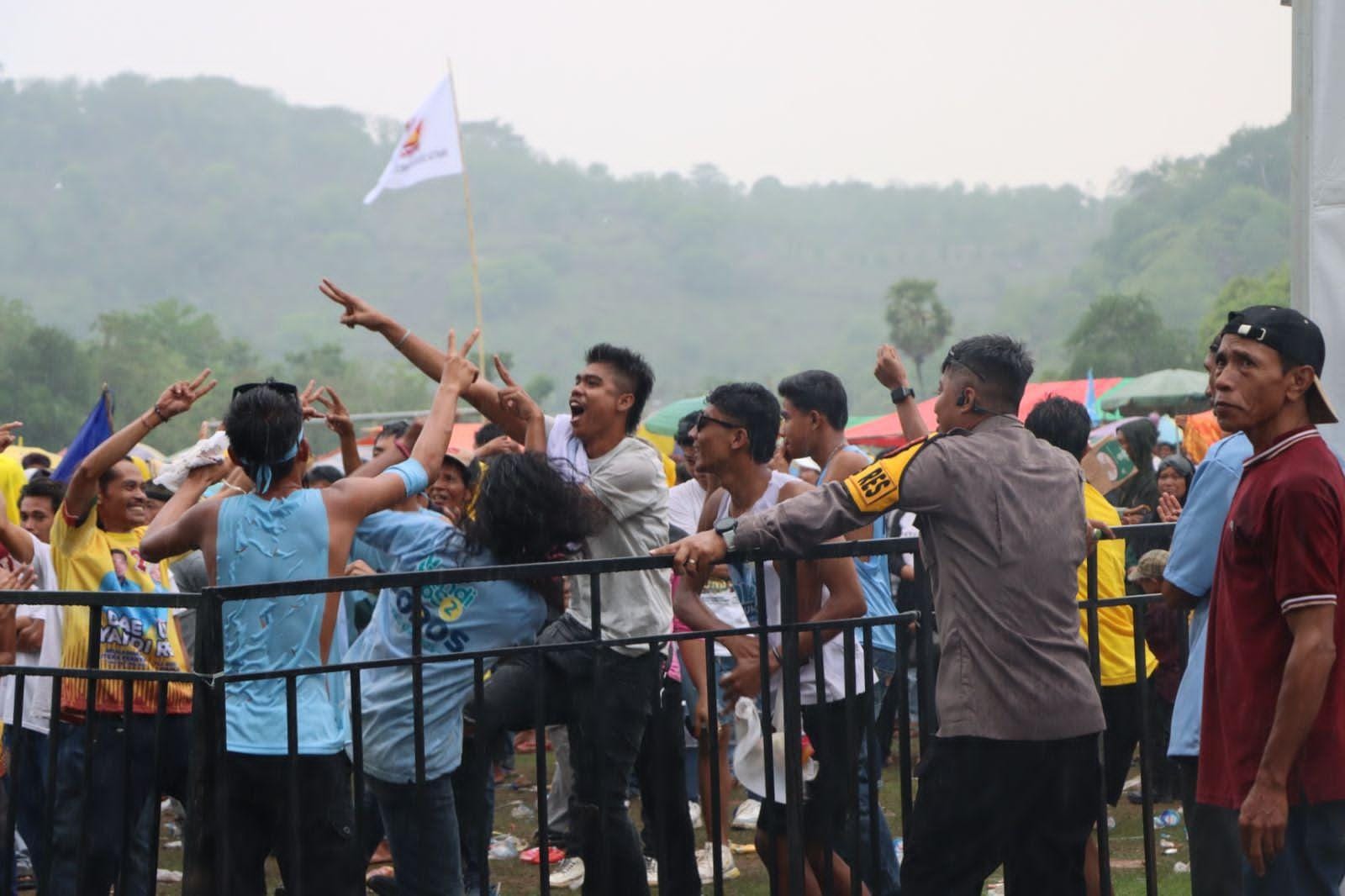 Kegiatan kampanye yang berlangsung di Arena Pacuan kuda Desa Panda Kecamatan Palibelo Kabupaten Bima itu berjalan dengan aman dan lancar berkat pengawasan dan pengamanan yang ketat dari jajaran Polres Bima.