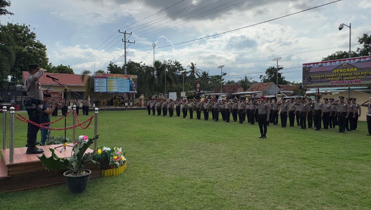 Bima, NTB (02/1/25) – Kapolres Bima Polda NTB AKBP Eko Sutomo S.I.K.,M.I.K., pimpin upacara korps raport kenaikan pangkat perwira dan Bintara Polri Polres Bima Selasa ( 31/12/2024 ), terhitung mulai tanggal 1 Januari 2025 yang dipusatkan di lapangan upacara Polres Bima