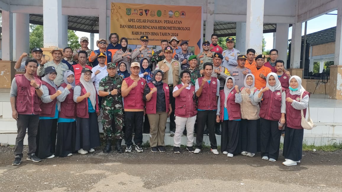Bima, NTB (13/12) – Kapolres Bima AKBP Eko Sutomo S.I.K.,M.I.K., diwakili Kasat Samapta IPTU MUHTAR menghadiri Apel Gelar Pasukan/Peralatan dan Simulasi Bencana Hidrometeorilogi Kab. Bima Tahun 2024
