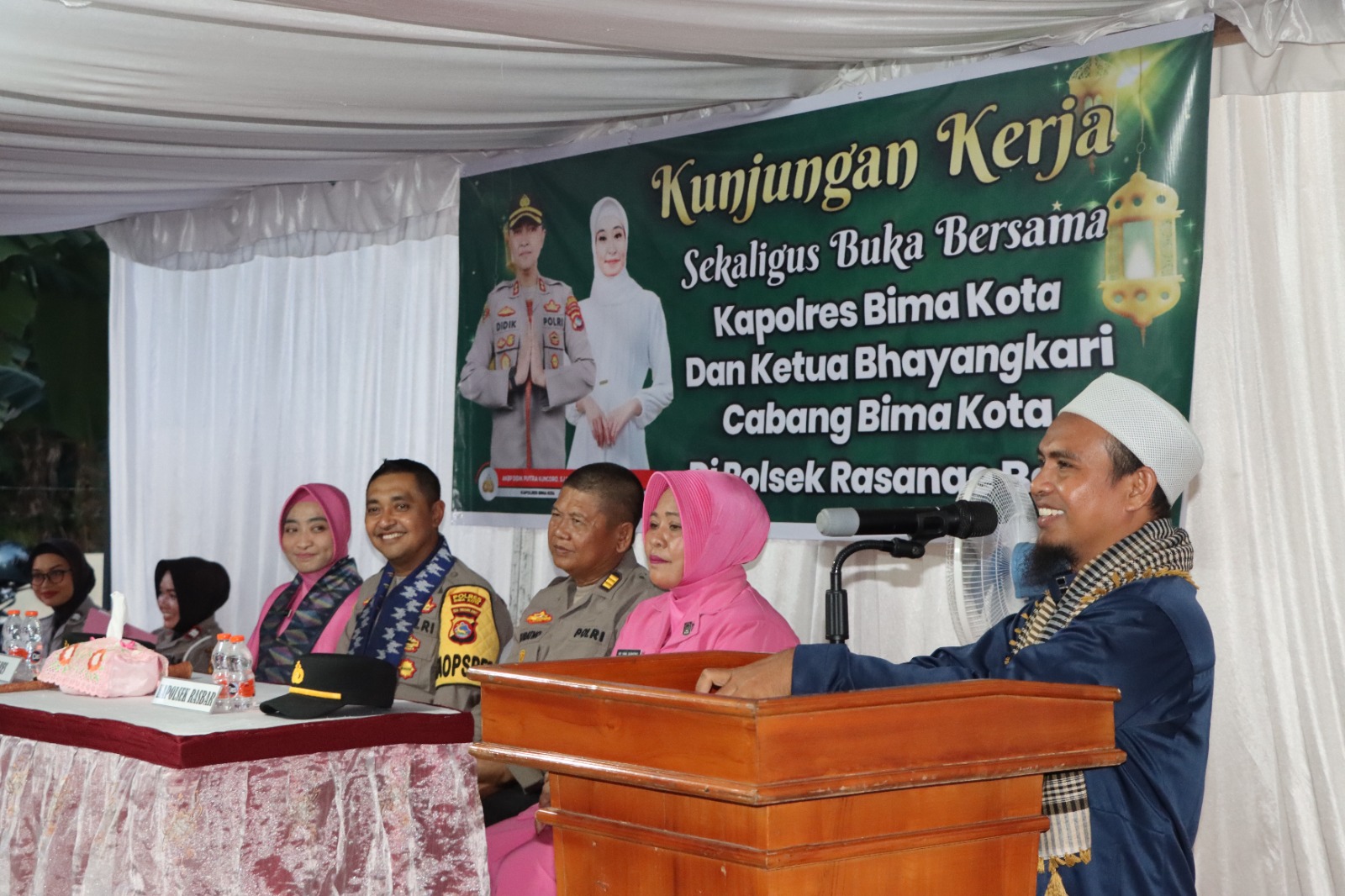Kota Bima, NTB (04 Maret 2025) – Kapolres Bima Kota, AKBP Didik Putra Kuncoro, S.I.K., M.Si., bersama Ketua Bhayangkari Cabang Bima Kota, Ny. Mira Didik, didampingi oleh Wakapolres Kompol Herman, S.H., serta Pejabat Utama (PJU) Polres Bima Kota, melaksanakan kunjungan kerja ke Polsek Rasanae Barat, Senin (3/3/2025). Kegiatan ini sekaligus dirangkaikan dengan buka puasa bersama dalam momentum bulan suci Ramadhan 1446 Hijriah.