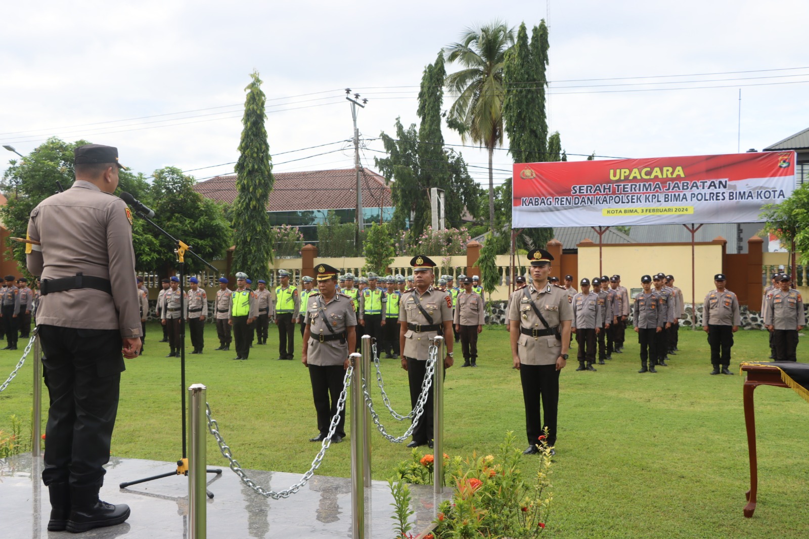 Kota Bima, NTB (3/2) – Upacara Serah Terima dan Pengambilan Sumpah Jabatan Kabag Ren dan Kapolsek Kawasan Pelabuhan Laut Bima, kegiatan di laksanakan di Lapangan Presisi Polres Bima Kota menjadi saksi dari upacara serah terima dan pengambilan sumpah jabatan Kabag Ren serta Kapolsek Kawasan Pelabuhan Laut Bima. Kegiatan ini dipimpin langsung oleh Kapolres Bima Kota, AKBP Yudha Pranata, S.I.K, S.H. Pada hari Sabtu, 03 Februari 2024, pukul 08.00 WITA