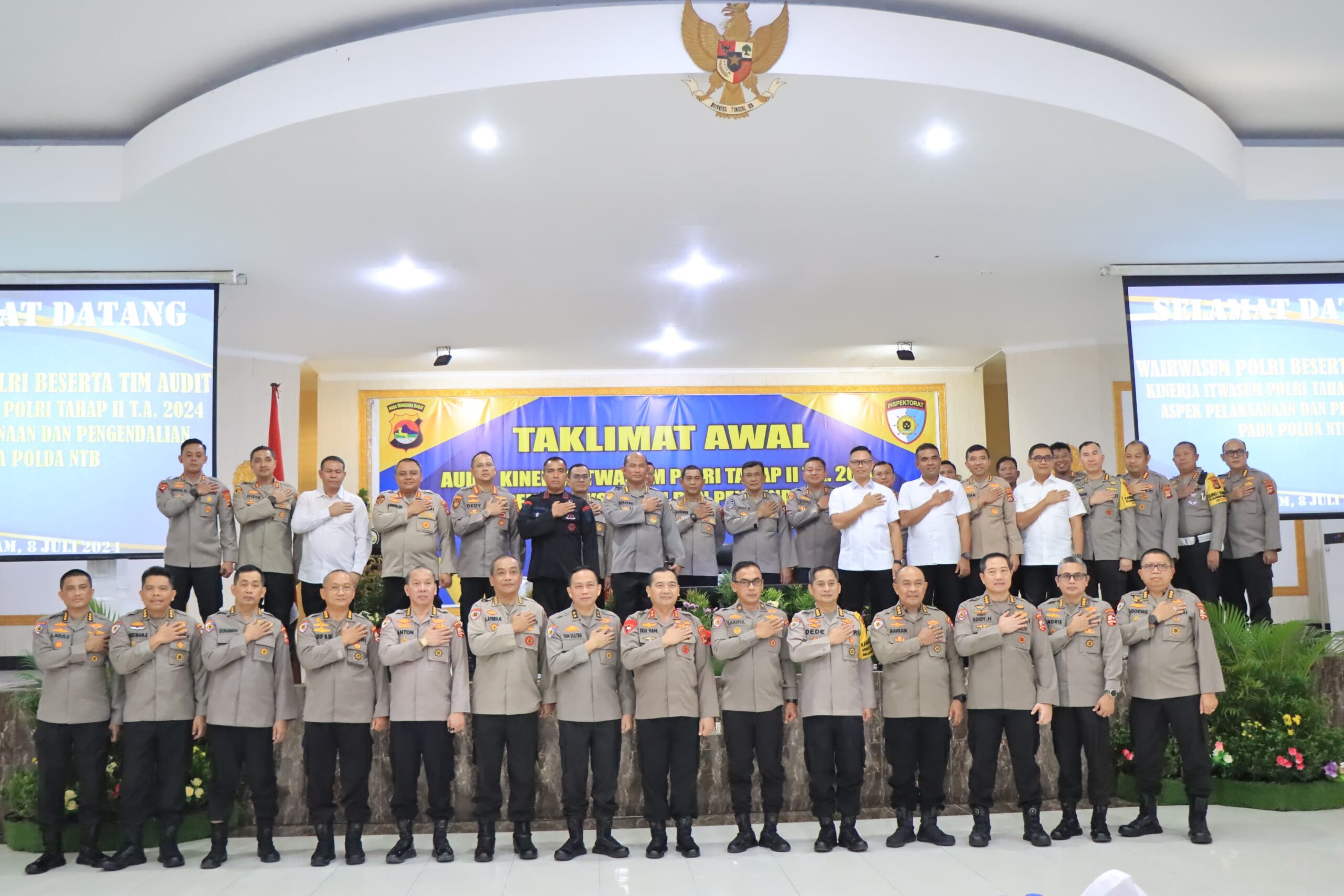 Mataram, NTB – Kapolres Bima Kota Mengikuti Taklimat Awal Audit Kinerja Itwasum Polri Tahap II bertempat di Aula Sasana Dharma Polda NTB, dilaksanakan Taklimat Awal Audit Kinerja Itwasum Polri Tahap II T.A. 2024 Aspek Pelaksanaan dan Pengendalian. Kegiatan ini dihadiri oleh Kapolres Bima Kota, AKBP Yudha Pranata, S.I.K, S.H. Pada Senin, 8 Juli 2024, pukul 09.00 WITA,