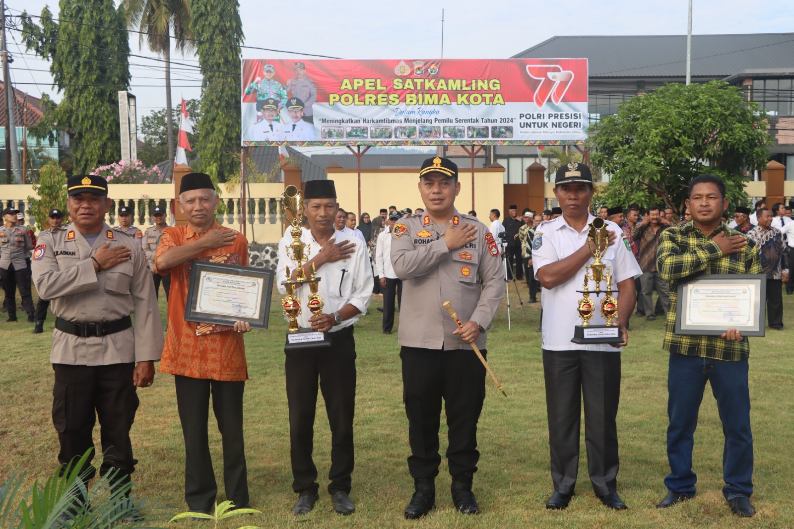 Apel Satkamling di hadiri, pejabat Forkompinda Kota Bima, Pejabat Pemkot Bima, Ketua KPU dan Bawaslu Kota Bima serta pejabat dan unsur terkait lainnya serat seluruh PJU Polres Bima Kota.