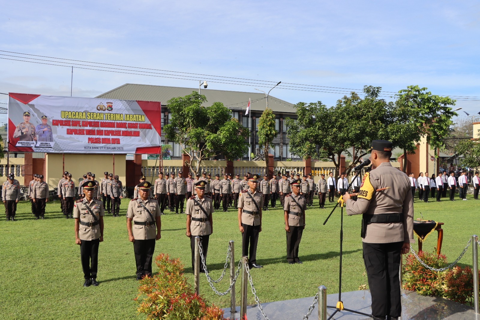 Upacara sertijab tersebut dihadiri oleh Wakapolres Bima Kota, KOMPOL Herman, S.H., Para PJU Polres Bima Kota, serta seluruh personel Polres Bima Kota dan Bhayangkari Cabang Bima Kota.
