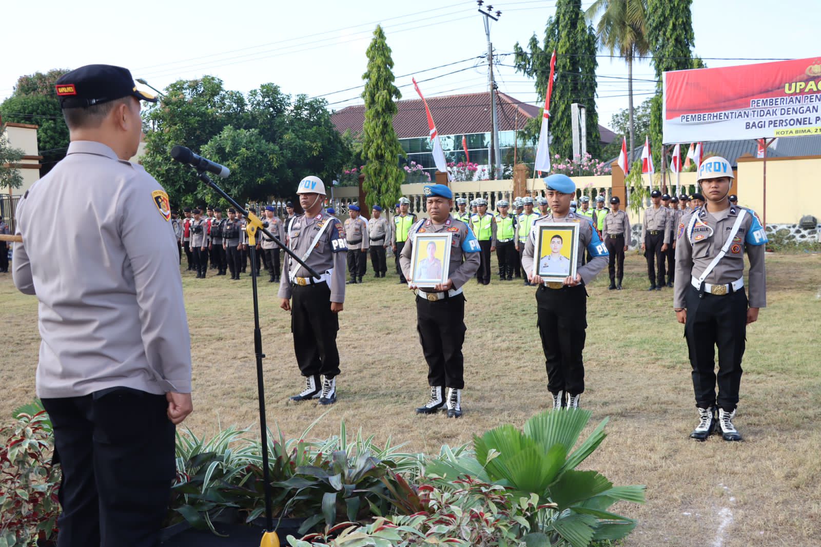 Upacara PTDH tersebut dipimpin langsung Kapolres Bima Kota AKBP Rohadi dan diikuti pula Wakapolres Bima Kota Kompol Mujahidin, PJU serta seluruh personil Polres Bima Kota.