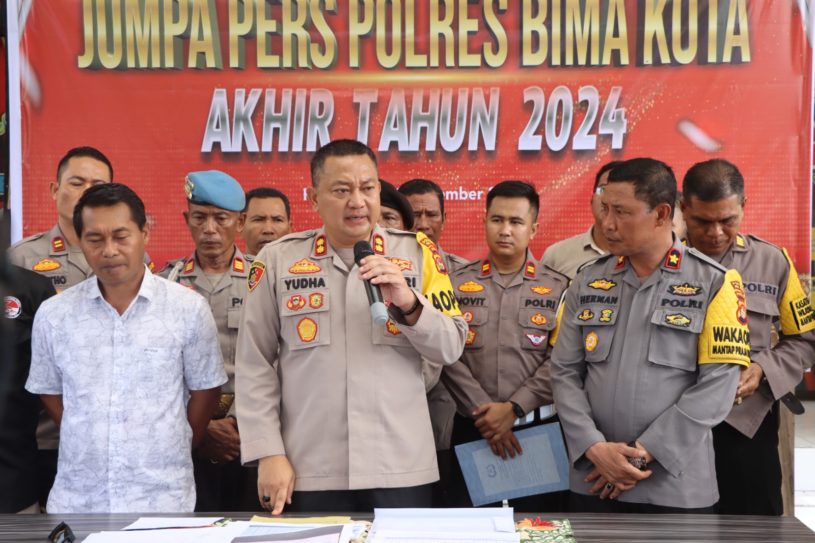 Kota Bima, NTB (28/12) – Kasus tindak kriminal di wilayah hukum Polres Bima Kota sepanjang tahun 2024 menunjukkan tren penurunan dibandingkan tahun sebelumnya. Hal ini diungkapkan oleh Kapolres Bima Kota, AKBP Yudha Pranata, saat konferensi pers di Mako Polres Bima Kota pada Sabtu, 28 Desember 2024.