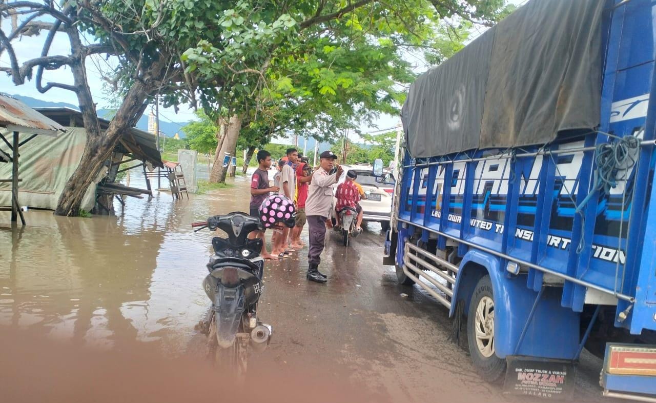 Selain itu personel yang dikendalikan oleh Kapolseknya AKP Sudirman SH itu juga mengatur lalulintas yang sempat tersendat akibat Luapan air yang menggenangi ruas jalan.