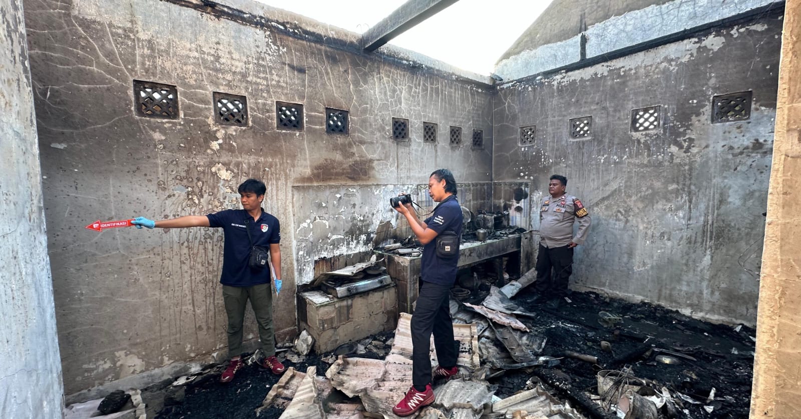 Bima, NTB (19/7) – Tim Identifikasi ( Inafis)Polres Bima Polda NTB melaksanakan Olah TKP awal di lokasi kebakaran di Desa Talabiu Kecamatan Woha Kabupaten Bima