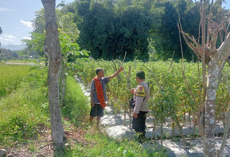 Aipda Lazarus Thomas Maspaitella mengunjungi lahan tomat milik warga binaan di Desa Dore Kecamatan Palibelo Kabupaten Bima Rabu (9/4/25) Siang Kemarin.