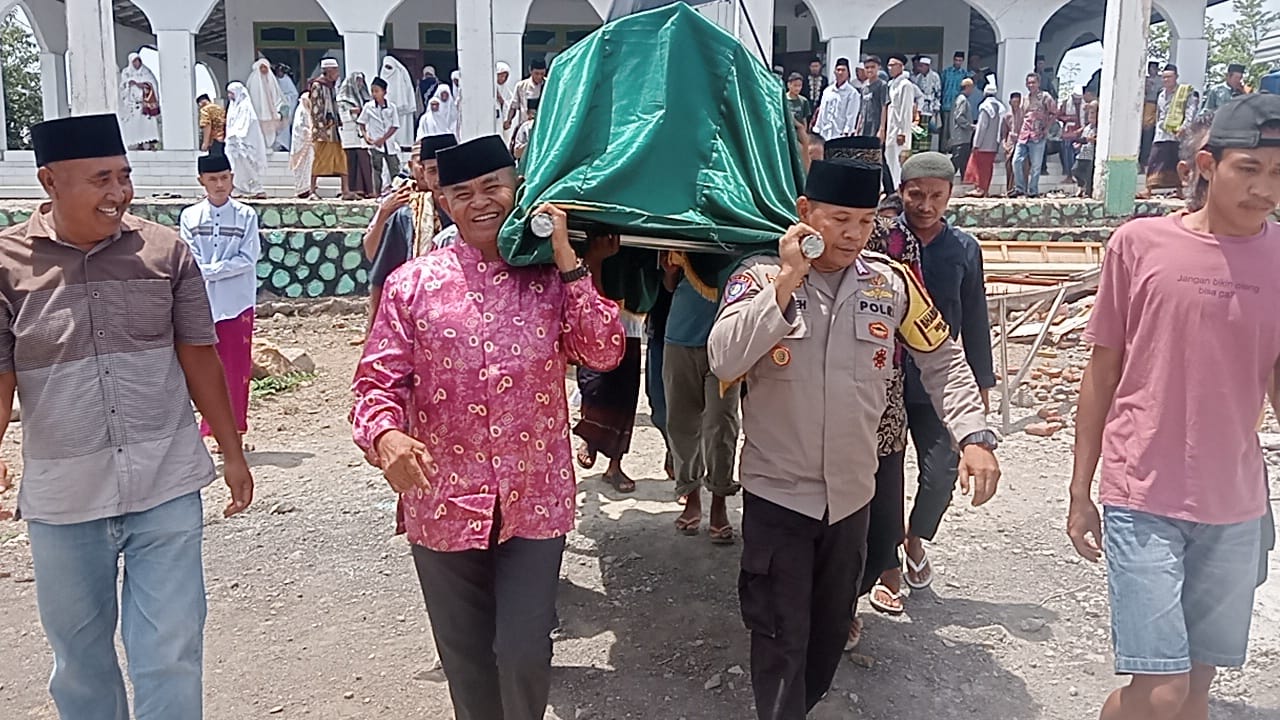Dalam kesempatan tersebut Bripka M.Saleh mengucapkan bela sungkawa dan ikut serta mengantarkan ketempat pemakaman di TPU Desa Setempat.