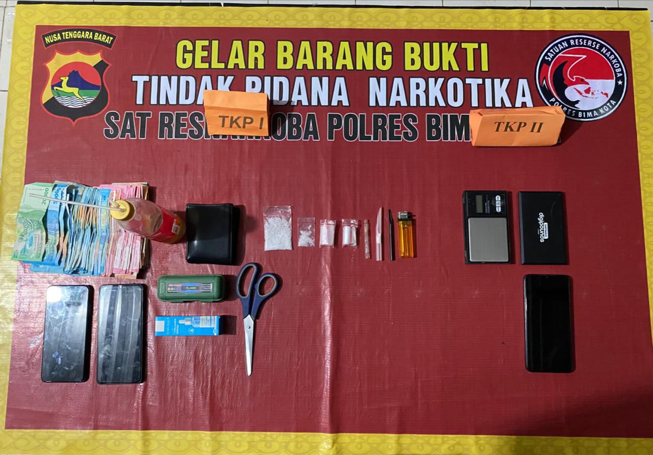 Kapolres Bima Kota, AKBP Yudha Pranata, melalui Kasat Resnarkoba Iptu Dediansyah, mengungkapkan bahwa di lokasi pertama, yaitu di rumah tersangka HA, Tim Kaisar Hitam berhasil menangkap dua pengedar. Keduanya adalah HA (30), warga Kelurahan Dara, Kecamatan Asakota, dan MAI (17), seorang pelajar asal Desa Monta, Kecamatan Monta, Kabupaten Bima.