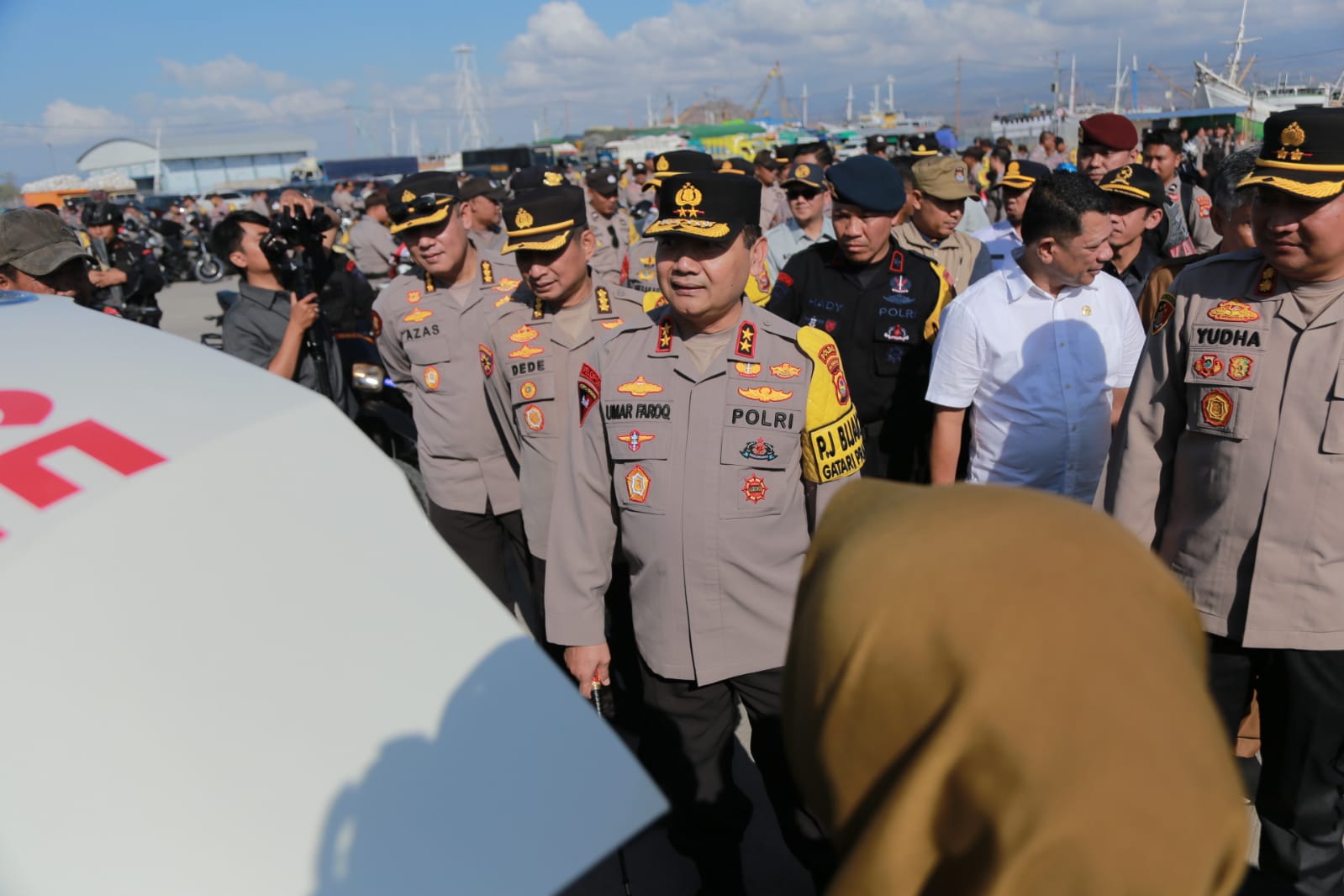 Kota Bima, NTB (13 Agustus 2024) – Dalam rangka mempersiapkan pelaksanaan Pemilihan Kepala Daerah (Pilkada) serentak 2024, khususnya di wilayah hukum Polda NTB yang meliputi Kota Bima dan Kabupaten Bima, dilakukan apel gelar pasukan untuk mengecek kesiapan sarana dan prasarana (Sarpras), alat utama (Alut), serta alat khusus (Alsus) milik Polri. Apel tersebut dipimpin langsung oleh Kapolda NTB, Irjen Pol Raden Umar Faroq, dan berlangsung di area Pelabuhan Bima.