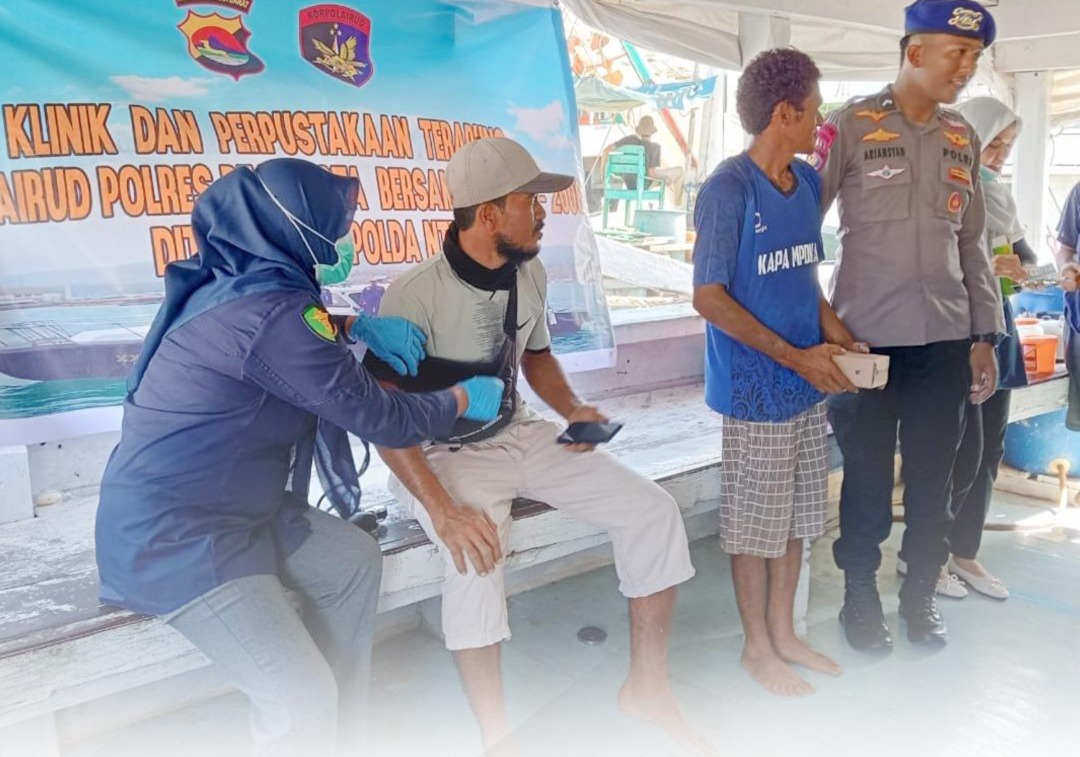 Kapolres Bima Kota AKBP Didik Putra Kuncoro, S.I.K., M.Si., melalui Kasi Humas Ipda Biaq Fitria Ningsih, mengatakan bahwa personel Sat Polairud bersama tim Dokkes terjun langsung memberikan pelayanan kesehatan secara gratis kepada para nelayan dan buruh yang beraktivitas di kawasan pelabuhan.