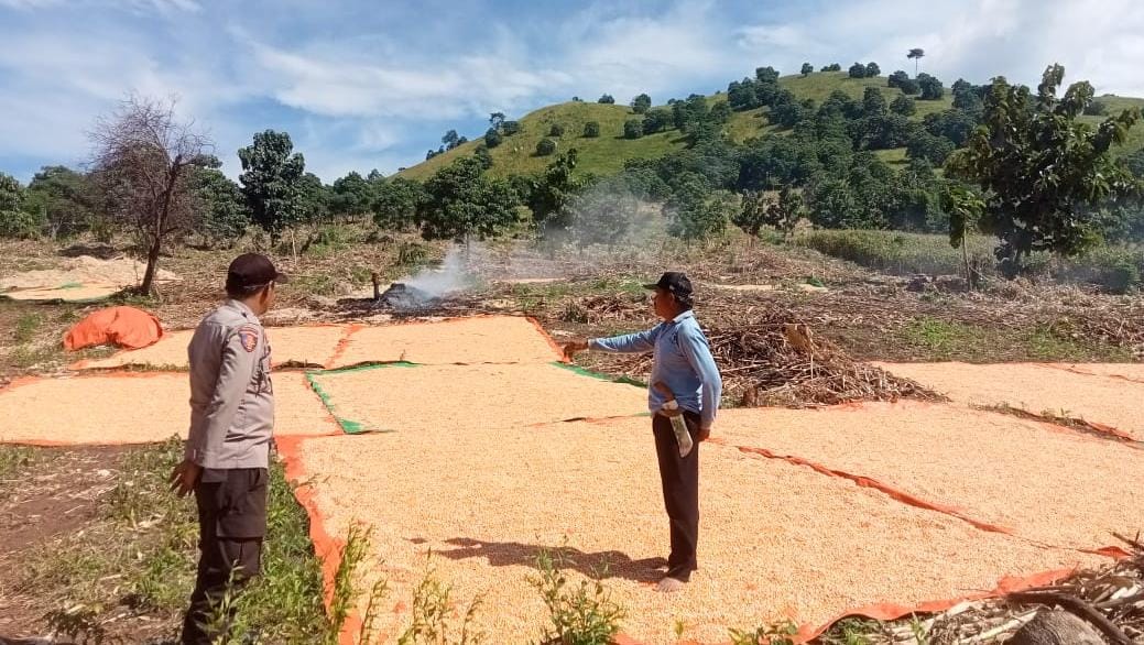 Bripka Didiq Hadisiswanto SH, pelaku penggerak ketahanan pangan di wilayah binaannya Desa Kanca Kecamatan Parado Kabupaten Bima aktif mendampingi petani mulai dari proses tanam hingga penjemuran Sabtu (5/4/25) kemarin.