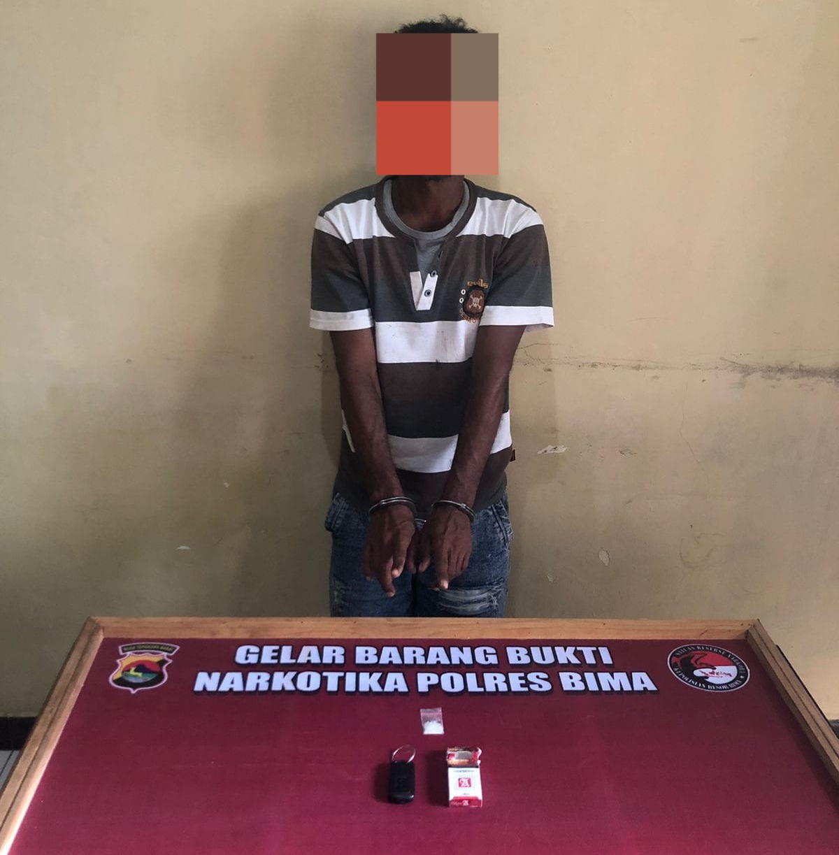 Kapolres Bima AKBP Eko Sutomo, SIK., MIK., melalui Kasat Resnarkoba Iptu Abdul Malik SH membenarkan pihaknya telah mengamankan pria berinisial SH dengan barang bukti narkoba jenis Shabu siap edar seberat 0,88 gram.