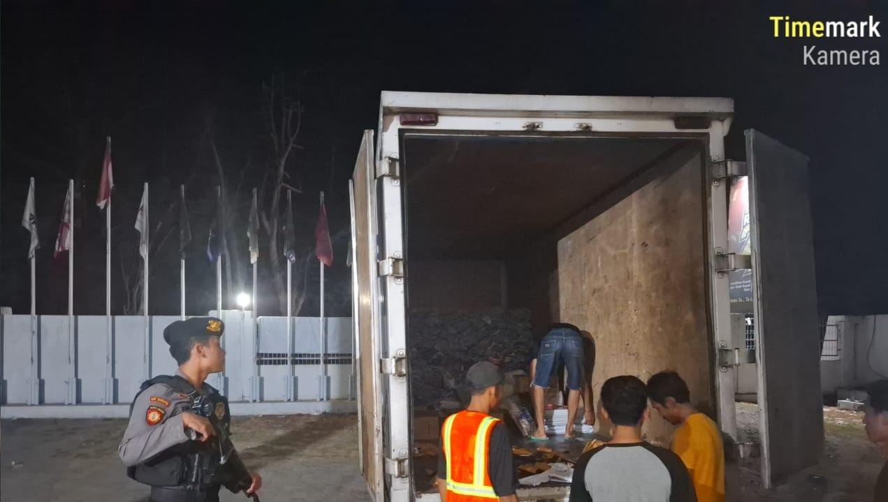 Pengamanan kedatangan logistik Pilkada berupa baliho dan spanduk itu berlangsung pada Minggu (20/10/24) sekira pukul 19.00. WITA malam .
